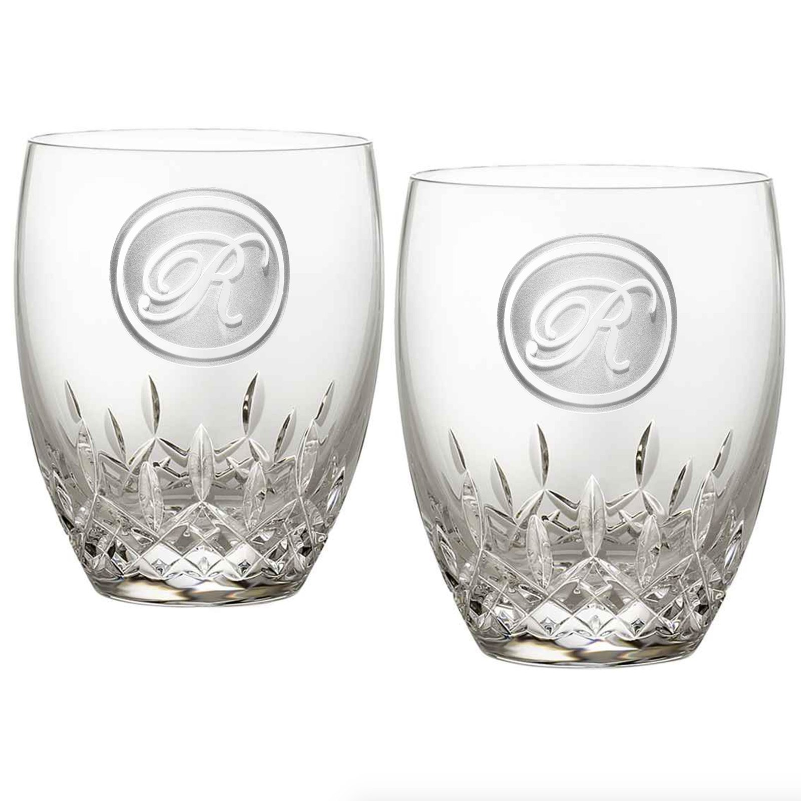 Featuring a lighter wall and more slender profile, these Lismore Essence monogrammed Waterford crystal rocks glasses are anything but old-fashioned, and prove ideal for unlocking the flavor and aroma of fine whiskey or mixed drinks. Swill the contents around the oversized bowl to highlight the intricate detailing of Lismore’s signature diamond and wedge cuts, while the comforting weight of Waterford’s hand-crafted fine crystal is apparent every time you raise the glasses to your lips.